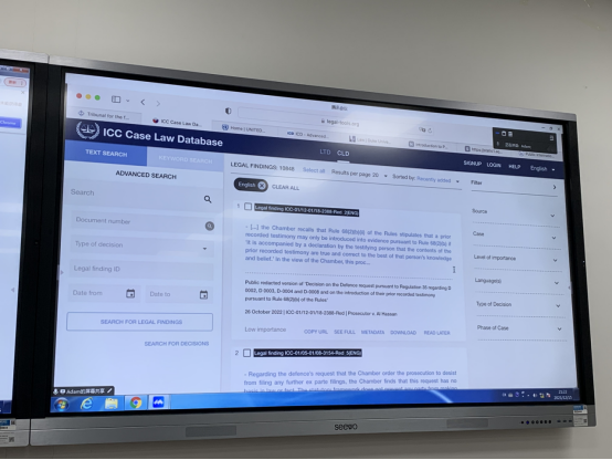 本次讲座围绕在诉状写作中如何援引先前案例展开,分析了前南斯拉夫国际刑事法庭、卢旺达国际刑事法庭以及国际刑事法院本身的相关案例的作用,阐述了法庭判决对关键概念和术语的解释和适用,这些对国际刑事法院犯罪构成要件的解释具有重要的指导意义。国际刑事法院《罗马规约》明确规定了案例法为法院可以适用的法律渊源之一,因而优秀的诉状需要引入丰富的案例法来增强论证力度。此外,杜宾教授还展示了如何使用学术工具进行国际刑法研究。其中重点介绍了国际刑事法院的数据库系统(ICC Legal Tool Database),并建议通过前南国际法庭、卢旺达国际法庭网站查找相关案例和判决。另外,还展示了如何利用数据库查找相关学术著作和法律评论。这些学术工具的使用可以深化对模拟法庭案件的研究,提升文书写作和辩论水平。