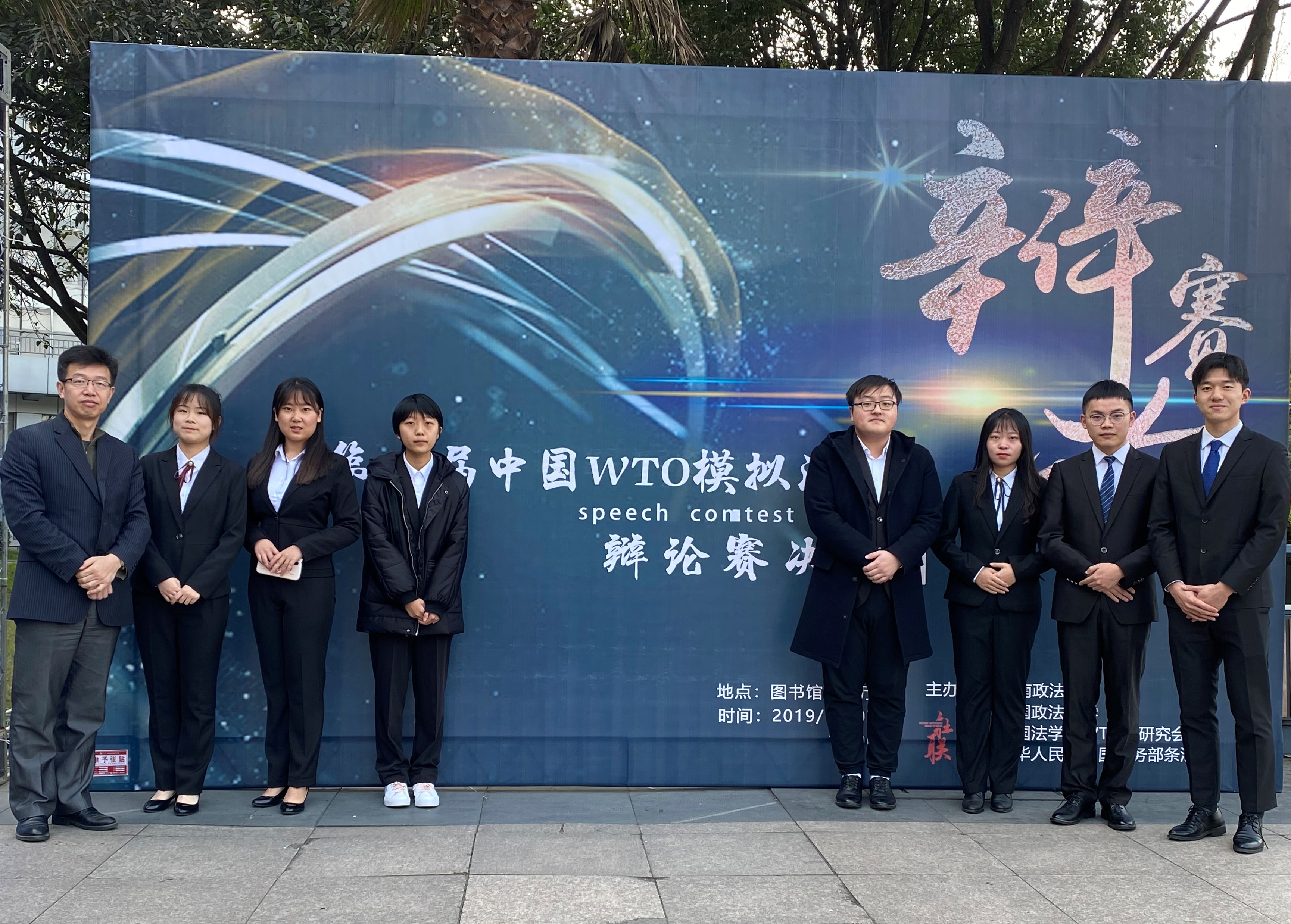 2019年12月6日至7日,第八届“中国WTO模拟法庭比赛(英文)”在西南政法大学(渝北校区)举行,我校及中国政法大学、南开大学、对外经济贸易大学、西南政法大学、上海交通大学、中央财经大学、北京外国语大学等十八所高校共同参加了赛事。经过激烈的角逐,我校代表队总分排名全国第六名,荣获本次比赛二等奖,并且荣获应诉方最佳文书奖,赵运成同学荣获优秀辩手称号。