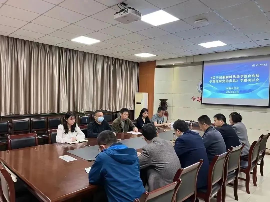 为进一步深入推进学习贯彻习近平新时代中国特色社会主义思想主题教育,深刻领悟习近平法治思想的精髓要义,5月29日,成人电影 于格物楼一层会议室就贯彻落实中共中央办公厅、国务院办公厅发布的《关于加强新时代法学教育和法学理论研究的意见》(以下简称《意见》),开展专题学习研讨会。学院党委书记李立主持会议。