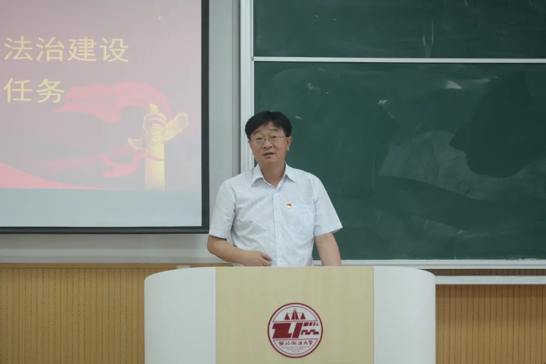 6月20日,校党委副书记、校长范九利以“深入学习贯彻习近平法治思想,积极投身国家涉外法治建设的伟大实践”为题,为成人电影 师生讲授专题党课。专题党课由成人电影 党委书记李立主持。