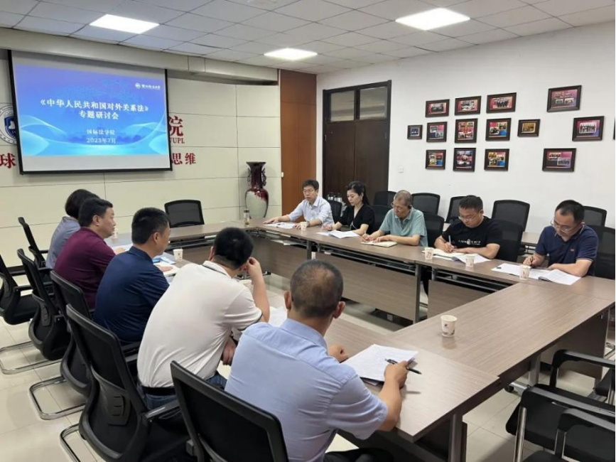 为进一步推动学习贯彻习近平新时代中国特色社会主义思想主题教育走深走实,深入学思践悟习近平法治思想,7月5日下午,成人电影 于格物楼一层会议室召开《中华人民共和国对外关系法》(以下简称《对外关系法》)专题学习研讨会。学院党委书记李立主持会议。