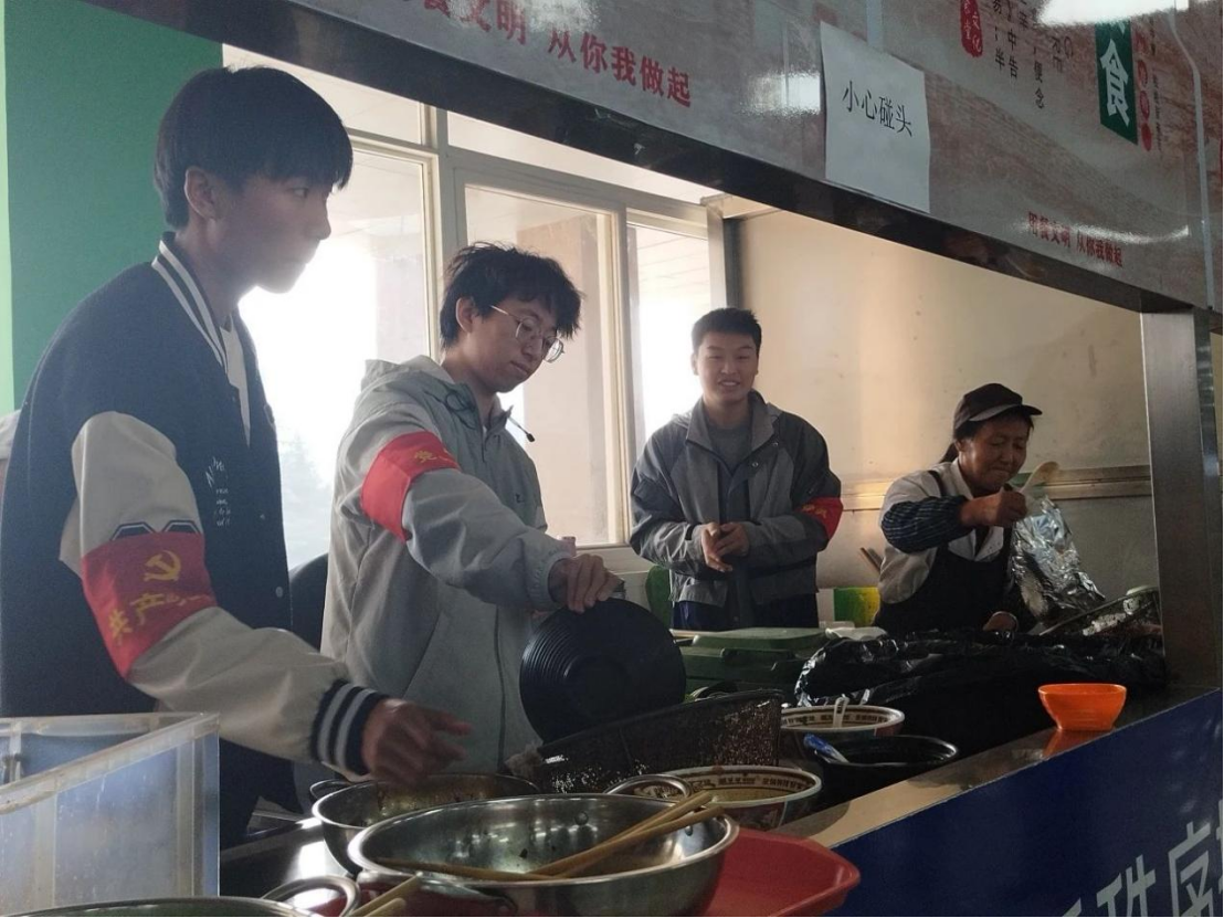 学生党员以小组为单位进行志愿服务,积极参与到劳动活动中,通过帮助食堂员工回收餐盘,坚定反对餐饮浪费的决心;提醒学生节约粮食,倡导厉行勤俭节约;清扫校园塑料纸屑,维护学校环境卫生,深刻领会“幸福是奋斗出来的”内涵与意义,积极弘扬奉献、友爱、互助、进步的志愿精神,把党的好思想、好作风,转化为群众看得见、摸得着的具体服务行为。