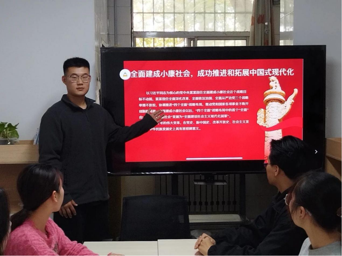 为深入学习和全面贯彻习近平新时代中国特色社会主义思想,深刻理解中国式现代化的历史使命与时代内涵,11月17日,成人电影 学生第一党支部于学生公寓2号楼思政工作站开展“笃行不怠十年路,踔厉奋发启新程”新时代十年伟大变革宣讲活动。