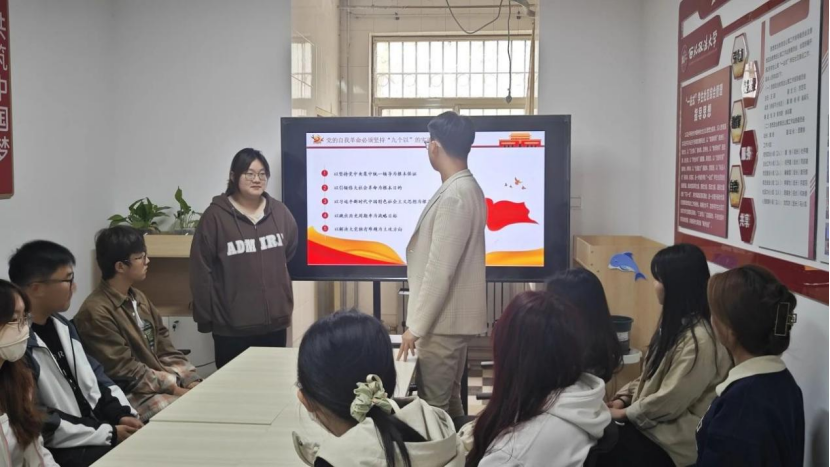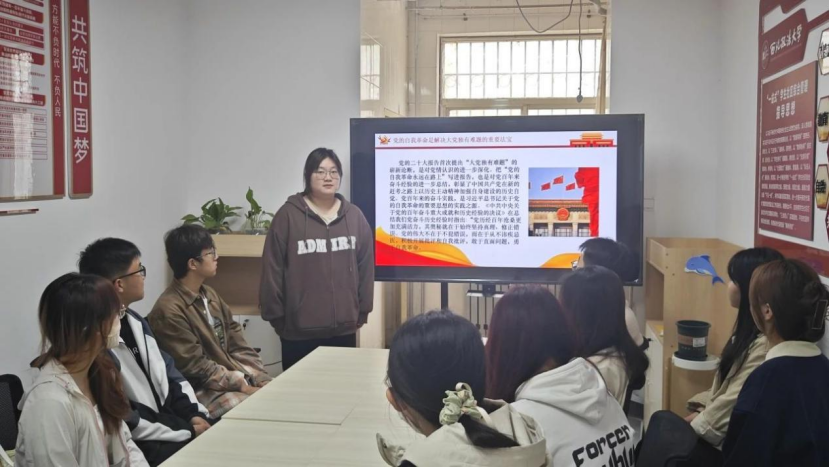 为深入学习贯彻习近平总书记关于党的自我革命的重要思想,4月1日,成人电影 学生第一党支部于学生公寓2号楼思政工作站开展“笃行不怠十年路,踔厉奋发启新程”新时代十年伟大变革宣讲活动。