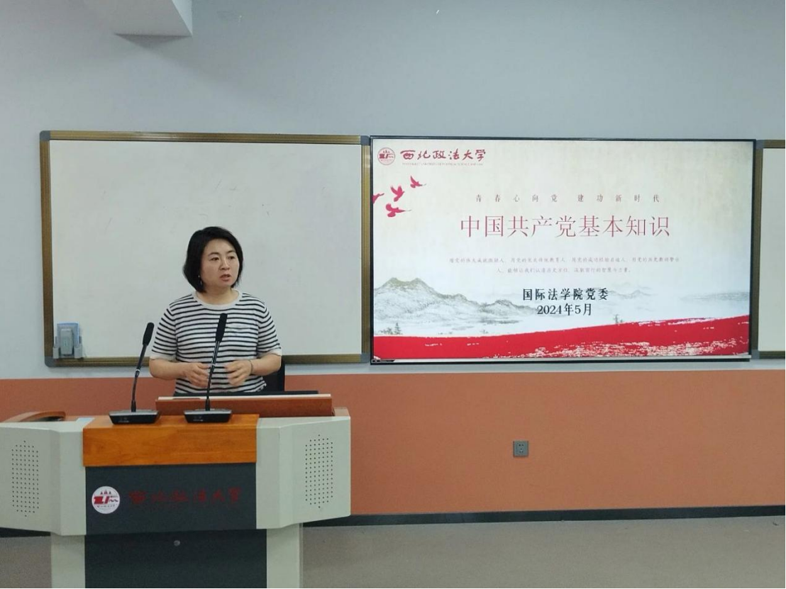 为切实增强入党积极分子对党的路线、方针、政策的认识和理解,严把党员发展入口关,5月17日中午,成人电影 党委于涉外法治基地组织开展党校第六十七期入党积极分子第一次集中培训,学院党委副书记吴晓娟进行授课。