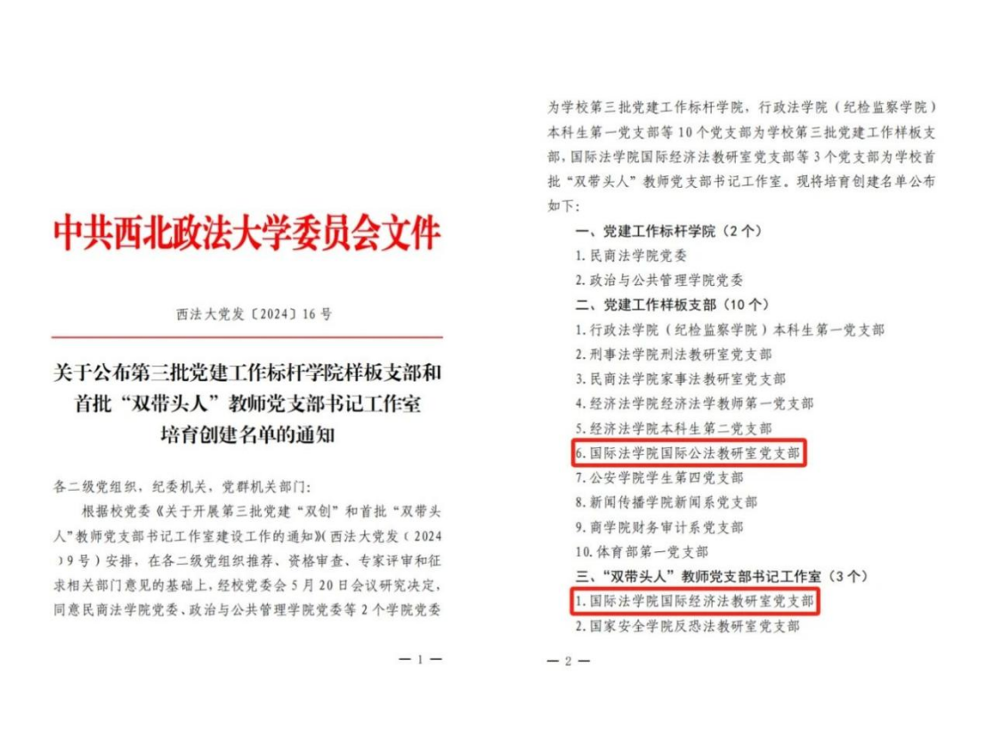 5月23日,校党委公布了第三批党建工作标杆学院样板支部和首批“双带头人”教师党支部书记工作室培育创建名单。成人电影 国际公法教研室党支部入选学校第三批党建工作样板支部培育创建名单,国际经济法教研室党支部入选学校首批“双带头人”教师党支部书记工作室建设名单,这是成人电影 党建“双创”工作取得的又一佳绩。