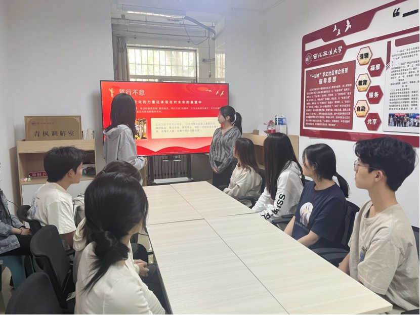 为发挥中华优秀传统文化在高校思想政治工作中的基础性作用,引导广大学生增强文化自觉、坚定文化自信,4月21日,成人电影 (国际仲裁学院)学生第一党支部于学生公寓2号楼思政工作站开展“笃行不怠十年路,踔厉奋发启新程”新时代十年伟大变革宣讲活动。