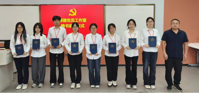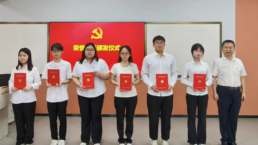 为庆祝中国共产党成立104周年,激励学院广大党员干部继承和发扬党的光荣传统和优良作风,7月1日,成人电影 党委于成人电影 德恒涉外法治人才培养基地召开2025年度“七一”表彰大会暨“明德”党员工作室新任干事聘书颁发仪式。学院党委书记李立、党委副书记吴晓娟、团委书记徐秉鹏、团总支书记苏芝双、2024级辅导员黄思齐及学生党员代表参加大会。学院党委组织员韩潇主持会议。