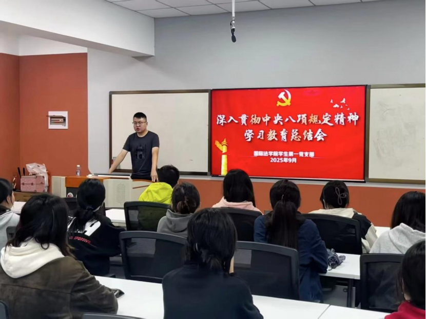 会议要求,要深刻认识贯彻落实中央八项规定精神的长期性和艰巨性,以打攻坚战、持久战的决心和恒心,持续推进作风建设常态化长效化,把严的氛围营造起来、把正的风气树立起来,以中央八项规定精神为牵引,深度融入学科评估、人才培养、教育教学等关键环节,切实将作风建设的丰硕成果转化为驱动学院育人事业高质量发展的强劲引擎,着力培养更多明法笃行、清正廉洁的新时代高层次涉外法治人才。