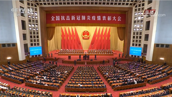 表彰大会上,中共中央总书记、国家主席、中央军委主席习近平向国家勋章和国家荣誉称号获得者颁授勋章奖章并发表重要讲话。大会还对全国抗击新冠肺炎疫情先进个人、先进集体,全国优秀共产党员、全国先进基层党组织进行表彰。习近平表示,在这场同严重疫情的殊死较量中,中国人民和中华民族以敢于斗争、敢于胜利的大无畏气概,铸就了生命至上、举国同心、舍生忘死、尊重科学、命运与共的伟大抗疫精神。