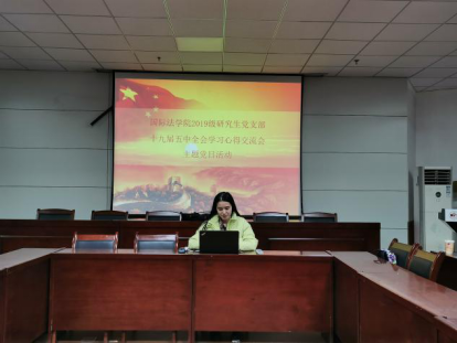 为深入学习党的十九届五中全会精神,全面落实校党委关于学习十九届五中全会精神的部署安排,12月18日,学院2019级研究生党支部于北校区综合楼报告厅举办十九届五中全会学习心得交流会。支部全体成员参加会议,支部书记曹倩倩主持会议。