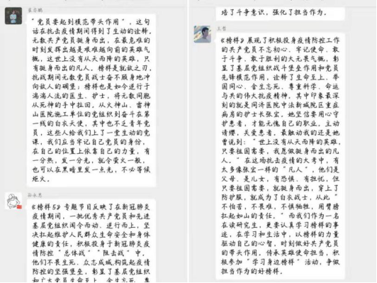 为弘扬抗疫英雄榜样精神,体会共产党人信仰坚定、心系群众、勇于担当、创新奉献的精神风貌,3月29日,成人电影 2019级研究生支部以线上会议的形式开展“重温英雄事迹,感受榜样力量”《榜样5》观后感交流会。支部全体成员参加会议,支部书记曹倩倩主持会议。