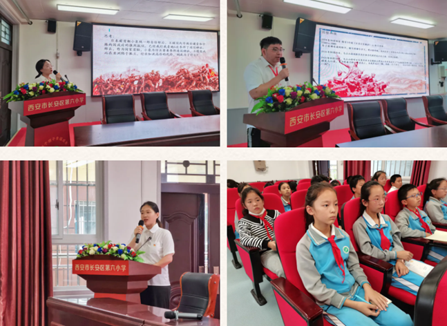 为深入贯彻落实习近平总书记在党史学习教育动员大会上的重要讲话精神,推进党史学习教育走深走实,引导青少年铭记抗战历史,从小树立爱国主义情怀,9月18日,成人电影 研究生第二党支部前往长安区第六小学开展爱国主义教育宣讲活动。长安区第六小学副校长强锐、德育主任姚霞及孟航纳、少队部邹颜及秦烁楠出席活动,支部全体党员参加活动。