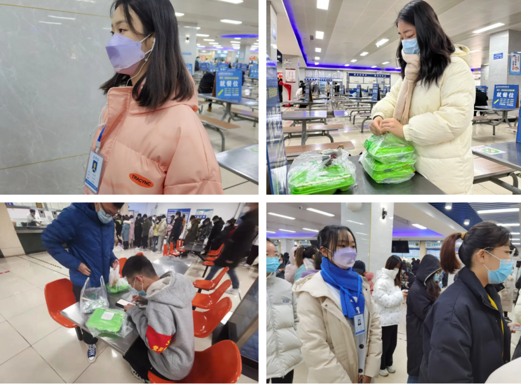 经过认真安排与严密防护,本次活动顺利开展。志愿者们胸前别着党徽,肩上佩戴袖章,一丝不苟做好疫情防控相关工作,将一份份爱心午餐送给了考研学子们手中,通过科学调配、系统分工,工作成效显著,有效避免了食堂人员聚集风险,助推学院常态化疫情防控工作开展,用实际行动践行了“奉献、友爱、互助”的志愿精神。