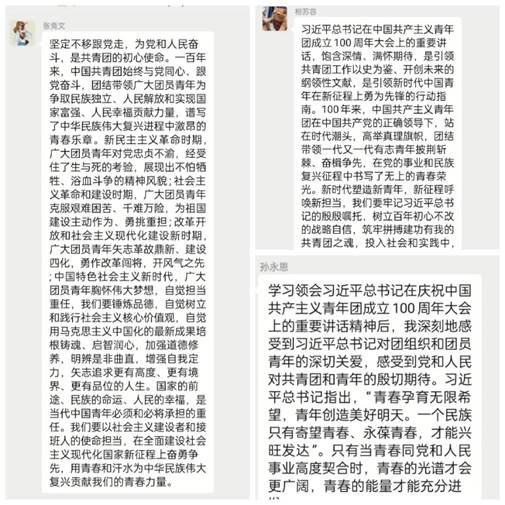 为深入学习贯彻习近平总书记在庆祝中国共产主义青年团成立100周年大会上的重要讲话精神,激发青年党员干事创业活力,为奋进新征程、建功新时代汇聚磅礴青春力量,成人电影 研究生第三党支部于6月1日通过线上方式开展“牢记初心跟党走,昂首奋进新征程”专题学习会。会议由支部书记曹倩倩主持。