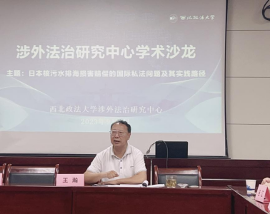 2023年9月9日晚,涉外法治研究中心在雁塔校区研究生综合楼三楼国际法研究中心报告厅举办“日本核污水排海损害赔偿的国际私法问题及其实践路径”专题学术沙龙。中国国际私法学会副会长、涉外法治研究中心执行主任王瀚教授担任引导性发言人,成人电影 副院长潘俊武教授担任主持人,成人电影 翁杰教授、刘萍教授、王泽林教授、吕江教授、周亚光副教授、张丝路博士、蒋围博士、张光耀博士担任与谈人,国际法专业博士研究生、硕士研究生及本科生共50余人参加沙龙。