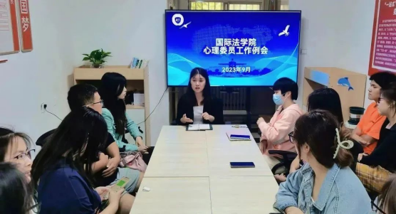 于9月22日在二号公寓楼思政工作站召开本学期第一次心理委员例会。本次会议由2020级辅导员贾少慧主持,学院全体心理委员参加。