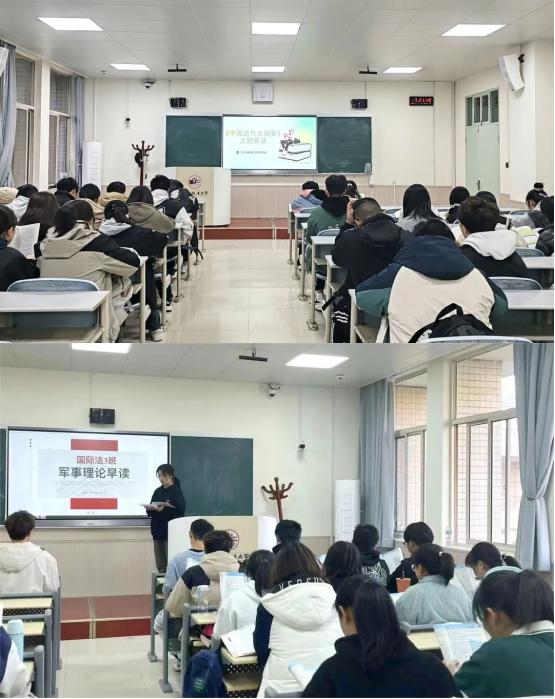 新生们伴着初升朝阳,按照指定时间在教室完成签到后,开始了激情昂扬的晨读,在一遍遍练习中纠正英语发音,品读课本知识,在阵阵读书声中感悟语言的魅力。忙碌而紧张的生活中,晨读既巩固着大家上课时学到的知识,又滋养着同学们的身心,让大家于书中寻找安宁,提高个人精神,以饱满的精气神面对一天的学习生活。