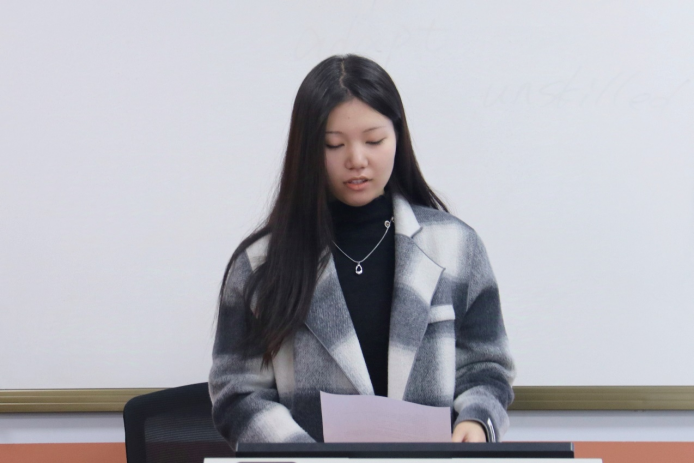 学生会轮值主席吴淏、王未希、于含语就学生会的具体情况进行了全面的汇报与深刻的反思总结,希望各班团干部积极与学生会携手合作,积极收集并反映同学们的意见与建议,号召全体同学积极踊跃参与到学院的各项活动中,为学院增光添彩。