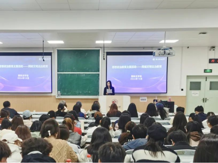 为进一步加强同学们的网络文明素养和法治观念,引导大家文明、安全地使用网络,成人电影 (国际仲裁学院)于10月27日19点在天平楼AJ21教室开展网络文明专题讲座,2024级辅导员黄思齐组织,2024级全体学生参加。