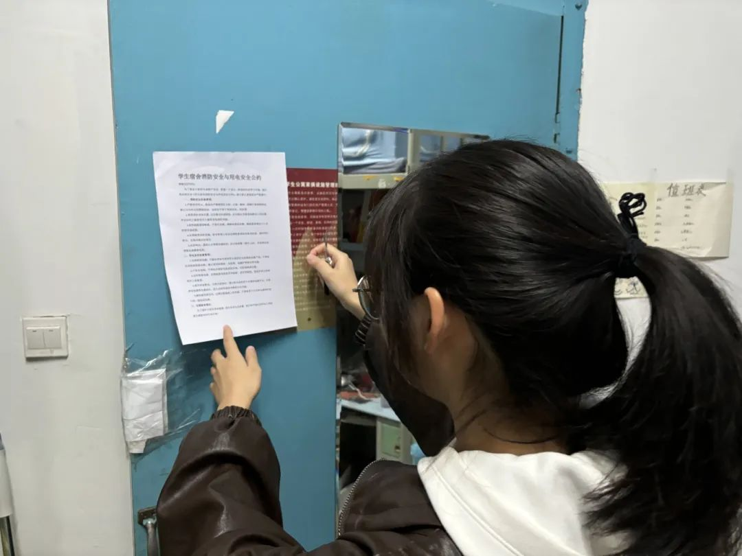 活动过程中,志愿者们对用电设备的安全状况进行了全面检查,确保电源插座无过载现象,并提醒同学们日常生活中要拔掉不用的电器插头,保持电源关闭状态。活动最后,志愿者们张贴并分发了消防安全宣传单,呼吁大家自觉遵守宿舍安全规定,共建一个安全、和谐的宿舍环境。