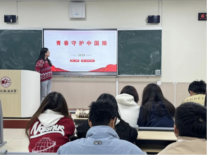 2024级各团支部围绕“粮食安全”讲述了我国在粮食安全方面取得的瞩目成就,详细介绍了转基因粮食、有机农业等热点话题,同时也提到我国粮食安全面临的诸多问题与挑战,告诫同学们节约粮食已不再是空洞的口号,而是关乎民族命运与国家未来的实际行动,鼓励大家以更加有力的举措、更加坚定的决心共同为守护国家粮食安全贡献力量。