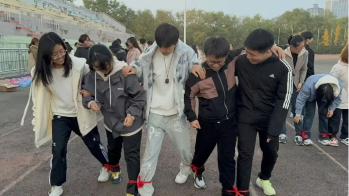 运动会在同学们自我介绍中拉开帷幕,轻松愉快的互动激发了大家的积极性,大家摩拳擦掌,信心十足,对冠军的宝座势在必得。运动会共有三个项目,分别为“众星捧月”、“N人N+1足”和“踩气球”。其中,“众星捧月”考验团队协作能力,参赛者需齐心协力控制一个弹性道具,避免小球落地;“N人N+1足”需要成员的默契配合,参赛者们脚踝相绑前进,齐心协力到达终点;“踩气球”则是一场敏捷的较量,参赛者们既要保护自己的气球,又要巧妙地踩破对手的气球。