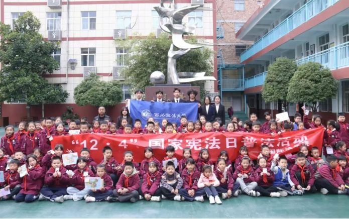 为贯彻习近平法治思想,增强青少年的宪法意识与法治观念,推动法治教育在校园落地生根,12月4日,成人电影 (国际仲裁学院)联合韦曲街道中心学校开展“12·4”国家宪法日普法活动。