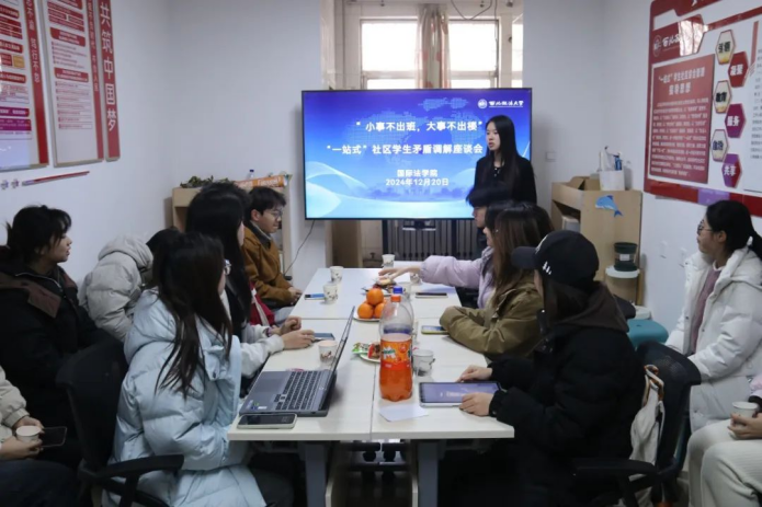 为营造和谐良好的校园环境,提升学生的沟通能力和解决问题的能力,12月20日,成人电影 (国际仲裁学院)于二号学生公寓楼“一站式”学生社区开展了“一站式”社区学生矛盾调节座谈会,学院党委副书记吴晓娟、团总支书记苏芝双、辅导员黄思齐以及2024级学生代表参加。