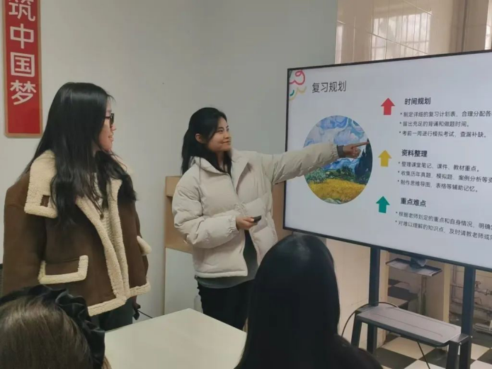 刘雪阳等同学针对上学期的期末复习经历总结和分享了自己的学习方法和应试技巧。构建系统知识框架是基石,依据课程大纲梳理各部门法脉络,是高效复习的关键。温故而知新,我们还需充分利用碎片时间,课间回顾上节课重要知识点、睡前在脑海中复盘当天学的要点。当然,保持良好作息也十分重要。规律作息让大脑时刻保持敏捷,学习效率更高。白天学习累了,进行简单运动,如散步、拉伸,缓解压力,以饱满精神投入复习。