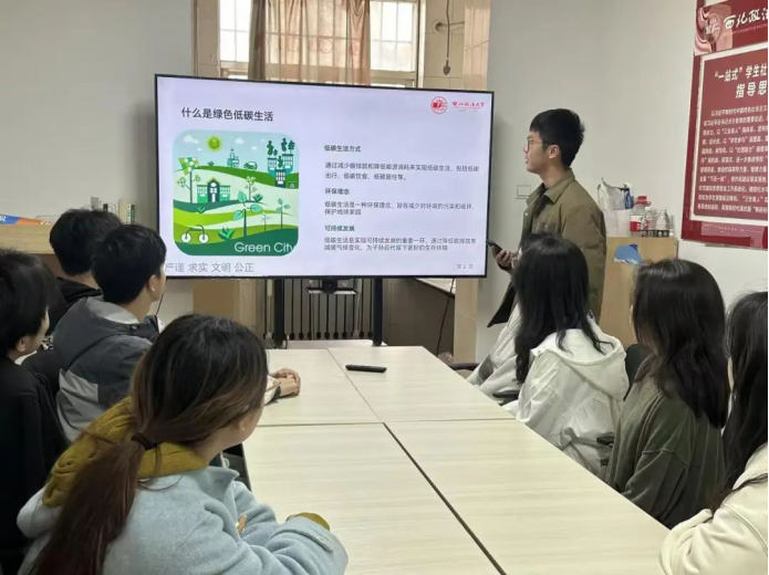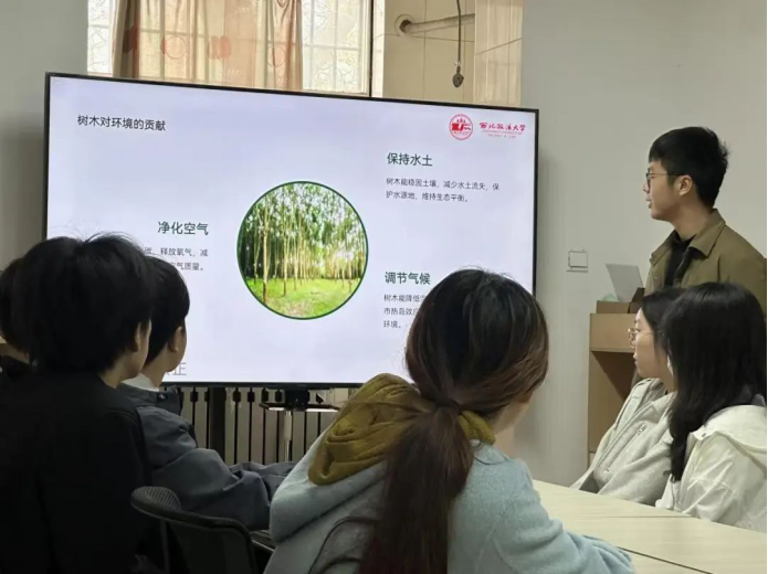 叶茂扬以绿色低碳生活为切入点,用生动的语言和详实的资料深入剖了践行环保理念的重要性,展示了多种多样的低碳生活方式。他提出,绿色低碳生活与我们每个人息息相关,它如同一条纽带,贯穿于我们的校园生活、家庭生活等各个方面,所有看似微小的举动都能汇聚成保护地球的强大力量。他呼吁同学们积极投身于校园绿色环保事业之中,成为环保的倡导者、践行者和传播者,让绿色成为校园生活的主色调。分享会后,大家前往校园内,欣赏了学校植树活动的成果,绿色生活的种子在每个人心中生根发芽。