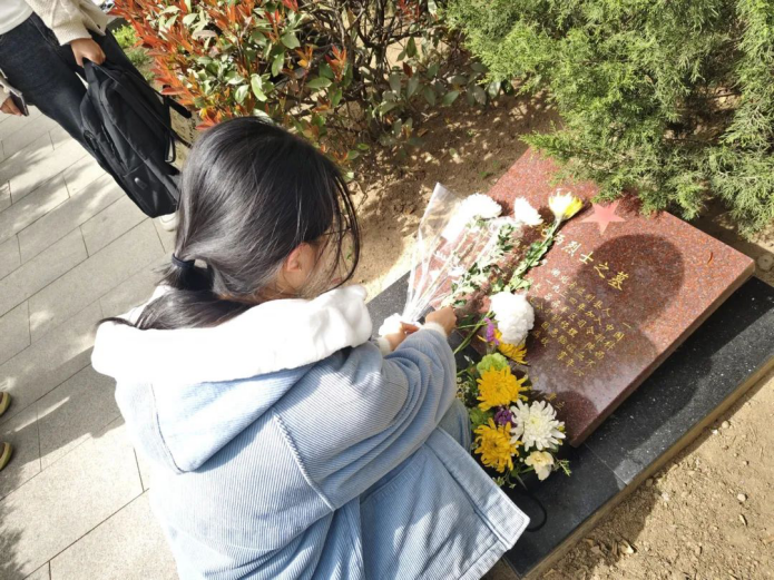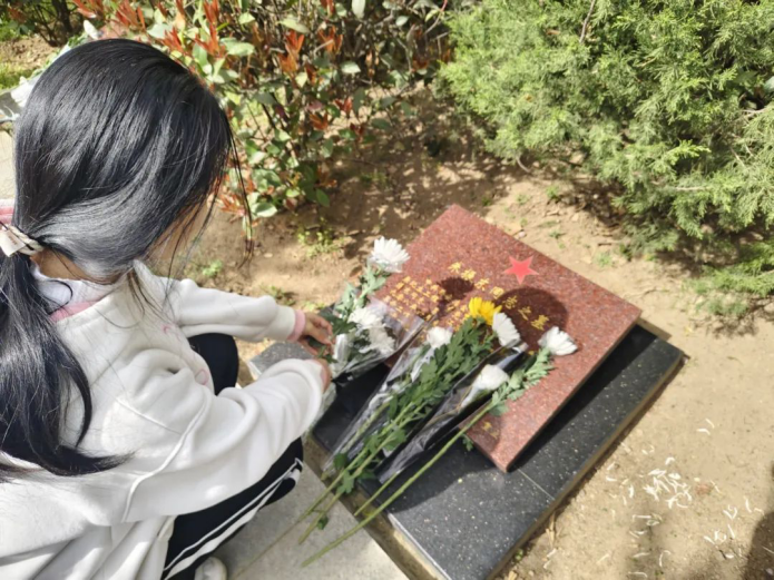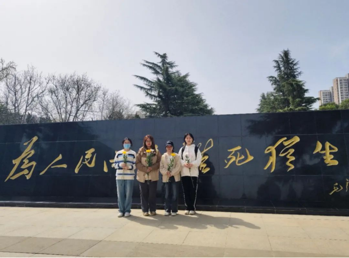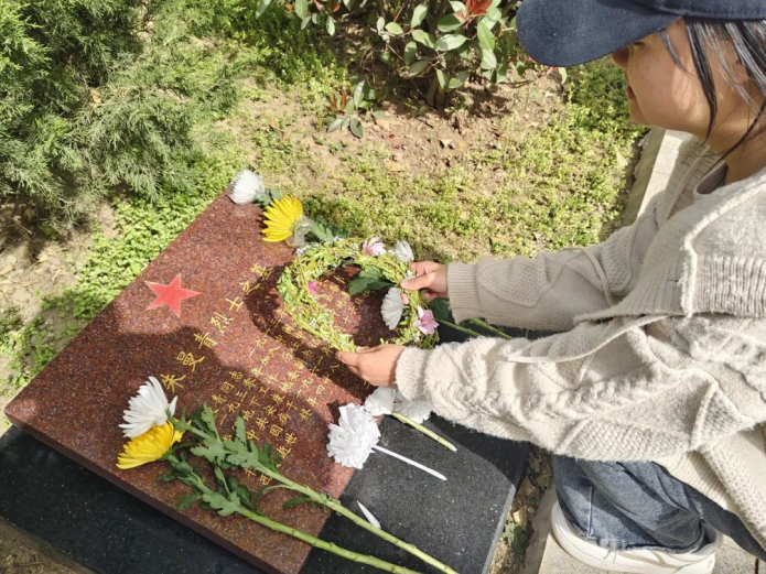 完成编织后,团支书朱琪琪、班长韩笑以及学生代表张鑫怡、吴芯冉,怀揣着对烈士的无限崇敬之情前往西安烈士陵园。踏入陵园,凝重肃穆的氛围裹挟而来,让人瞬间心生敬畏。她们庄重地献上手中的柳环,柳环上嫩绿的枝叶随风轻颤,仿佛在与英烈低语,向长眠于此的烈士致以最崇高的缅怀,传递出当代青年对革命先辈的追思与敬仰,让红色精神在这庄重的仪式中得以延续。