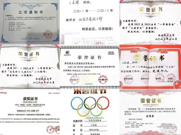 自入学来担任班长兼团支部副书记,我努力扮演好老师与学生之间沟通桥梁的角色,积极完成上传下达的工作任务,认真开展班级每一项活动,全心全意为同学服务,连续两年带领班级获得校级三好班集体和院级拔河比赛的亚军。在本科四年的学习生活中,我不仅取得了优秀的学业成绩,还积极参与各类竞赛和科研项目,以此不断提高自身的问题分析、法律适用以及信息检索的水平,培养团队协作能力。未来已来,征途漫漫。我愿以今日之荣誉为起点,持法律之明镜,照世间之是非;秉心中之赤诚,赴法治之山海。