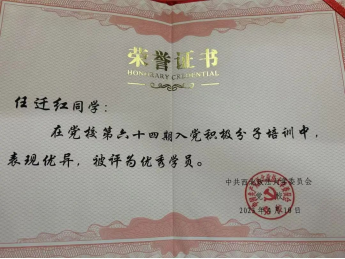 2、2022-2023学年成人电影 (国际仲裁学院)“优秀入党积极分子”荣誉称号3、2021-2022学年成人电影 一等奖学金暨“优秀学生干部”称号