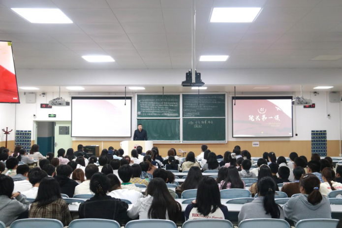学院党委书记李立在讲授思政课时指出,学院育人氛围和谐团结,自开展国际法专业教育以来逐步积淀扎实法学基础,近年更与西安外国语大学携手启动“法学+外语”联合培养计划。同时,他提到学院考研率相对较高、师资力量雄厚,强调近年的显著发展为学生搭建了更多成长平台,期望同学们以学赋能、以行践知,用扎实学识筑牢根基,用实际行动诠释担当,奔赴更广阔的未来。