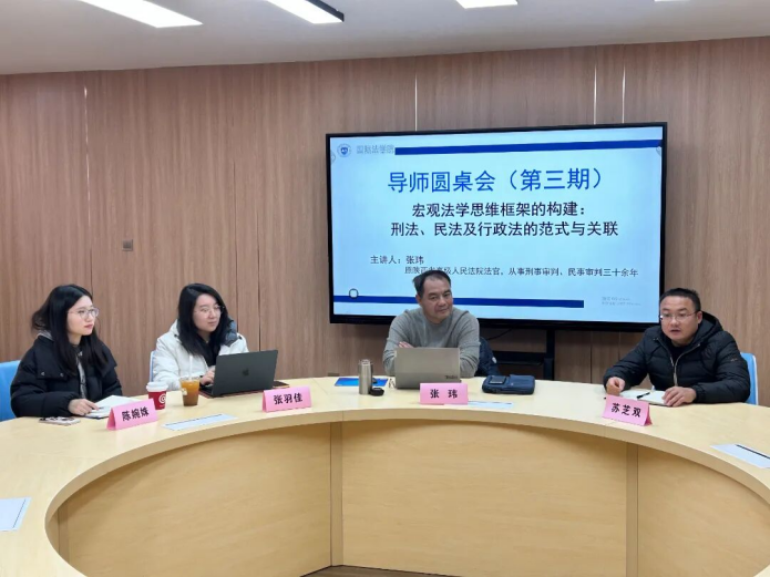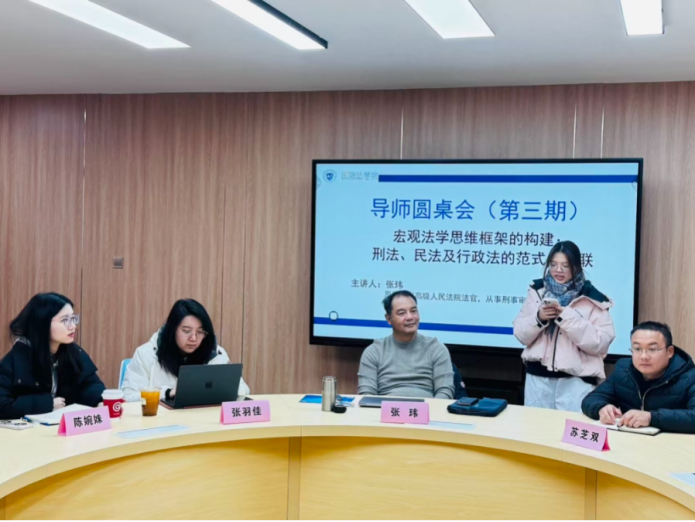 为帮助学生构建系统的法学思维框架,培养跨部门法综合分析能力,夯实专业学习基础,成人电影 (国际仲裁学院)于11月21日在学生成长发展中心朋辈导师室开展了导师圆桌会系列活动,原陕西省高级人民法院法官张玮主讲,本科生导师陈婉姝、张羽佳,学院团总支书记苏芝双,2025级本科生代表参加。