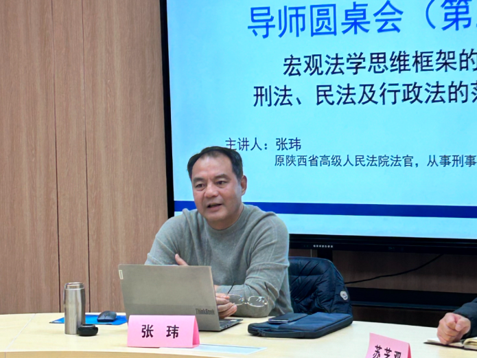 本次活动以“宏观法学思维框架的构建:刑法、民法及行政法的范式与关联”为主题展开。张玮结合三十余年审判经验,以强制拆迁案为例,系统阐释了民事、行政与刑事责任的认定标准,并从法律关系主体、调整对象等维度厘清了三者的本质区别。他还介绍了最高人民法院通过司法解释统一量刑标准的实践成效,有效解决了“同案不同判”的问题,保障了司法公正的实质性落地。