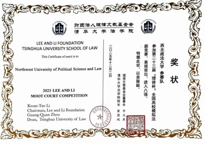 近日,第二十三届“理律杯”全国高校模拟法庭竞赛在清华大学圆满落幕。作为被誉为“中文模拟法庭竞赛皇冠上的明珠”的顶级赛事,本届竞赛吸引清华大学、中国人民大学、中国政法大学等全国40支顶尖高校代表队同台竞技。我校代表队不负众望,跻身全国八强,斩获赛事全国三等奖,其中成人电影 2023级本科生徐皓槿、2024级本科生董佳琪作为校代表队核心成员,以扎实的专业功底与出色的临场表现,为团队佳绩贡献关键力量,尽显国际法学子的专业素养与拼搏风采。