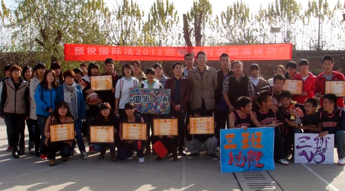 副院长乔军伟,辅导员冯斐、苏芝双分别为获奖班级颁奖。本次比赛共设四个奖项,分别是男女冠军、男女亚军、男女季军、男女最佳组织奖。其中,获得最佳组织奖的分别是二班和四班;男女第季军分别是二班和七班;男女第亚军分别是一班和五班;男女冠军分别是三班和四班。
