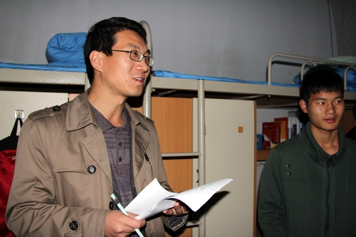 11月15日下午5时,活动正式开始。乔军伟副院长在活动开始前做作了动员,阐明了检查宿舍的原因和目的。他的一句“有些同学看起来一表人才,回到宿舍以后,那叫一个惨不忍睹啊!”让同学们忍俊不禁。不过他的话也客观的反映出目前学生身上确实存在的一些不好的习惯,他要求学生除了学习勤奋还要在生活上养成良好的习惯,并由此说明本次检查宿舍的目的正在于建设文明和谐的宿舍环境并培养同学们养成良好的习惯。