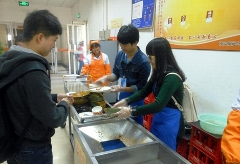收拾餐食的活动,主要是志愿者们协助食堂工作人员收餐盘,擦桌子,收拾杂物等,志愿者们提前来到食堂,他们系好围裙,带上保洁手套投入到清洁工作当中。他们在残食车边热情地接过每一位老师和同学递过来的餐具,并将餐具分类整理。每一个志愿者在工作时都面带微笑,他们朝气蓬勃,展现出积极为他人服务的态度与甘于奉献的精神。另一方面,在成人电影