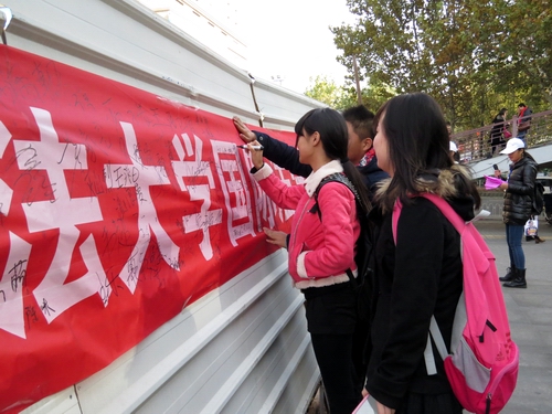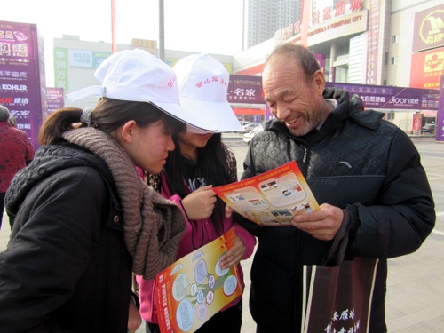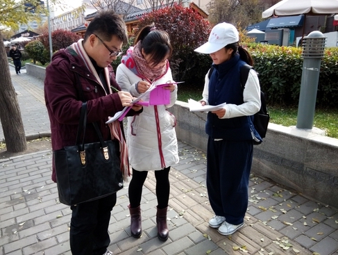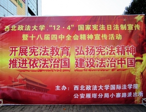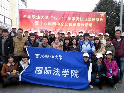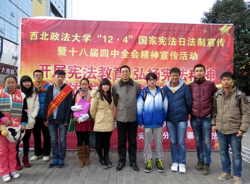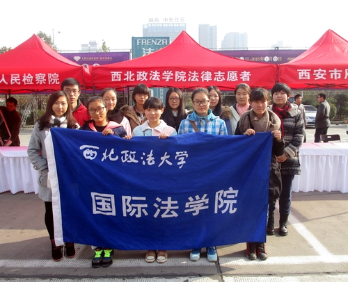 的志愿者们来到西安市南大明宫建材家居城,参加由西安市雁塔区司法局主办的国家宪法日暨全国法制宣传日活动。志愿者们同司法局工作人员一起走上街头,宣传法律知识。志愿者中高年级的同学负责同司法局工作人员一起解答咨询者的法律问题,低年级的同学们则在路口为行人发放法律知识宣传册。尽管天气寒冷,志愿者们的热情丝毫没有受到影响,热心接待着前来咨询的市民们,为他们答疑解惑。