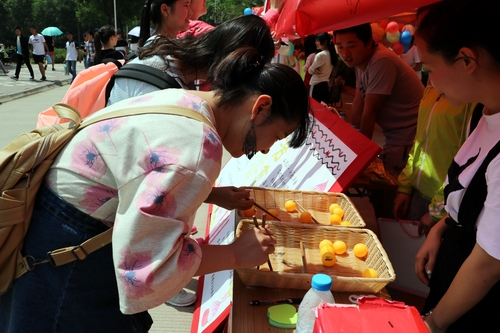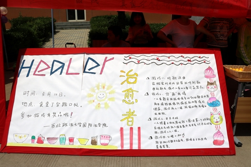 本次活动的主要项目有:志愿签名、心理测试、悄悄话树洞、猜歌名、心有灵犀和夹乒乓球比赛。几个项目各有特色,既有技巧性较强的项目,也有娱乐元素较多的项目,活动的成功举办达到了寓教于乐的效果。活动现场不断有同学来体验这些项目,场面十分热闹。同学们在游戏中释放了自己的压力,从中获得了乐趣,并学到了心理健康方面的知识。下午14:00,本次活动正式结束。