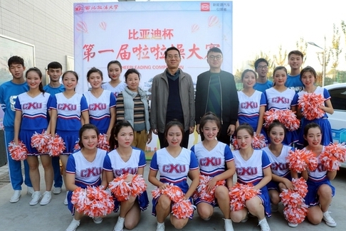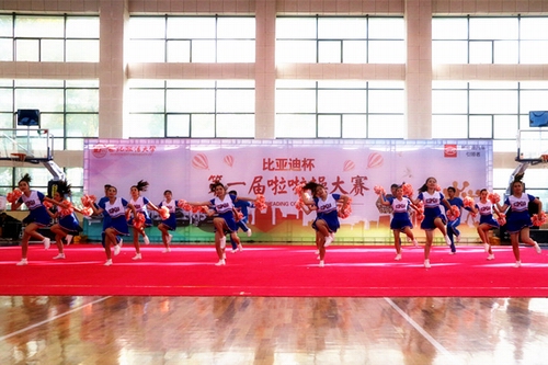 第一届比亚迪杯啦啦操大赛于我校长安校区体育馆隆重召开。本次大赛由校党委主办,比亚迪汽车有限公司赞助支持,并特邀数位国内国际知名的职业裁判负责大赛评分。我校党委副书记赵健出席了本次大赛并致开幕词,同时出席大赛的领导还有:校学工部部长张军政,成人电影