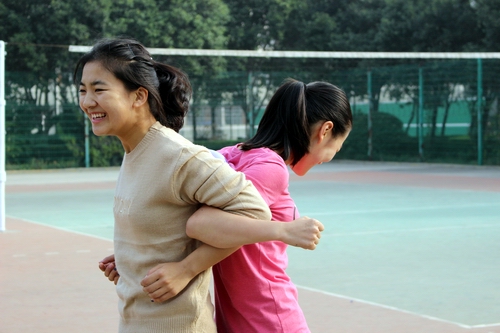本次活动开始之前,全体参与者被分为四队:“王者一队”“颜值二队”“魔仙三队”“飞虎四队”,各队选出队长并确定口号,在简单的热身活动之后,本次新生素质拓展活动正式开始。本次活动主要由“传球识人”“背夹球”“不倒森林”“坐地起身”四部分组成。