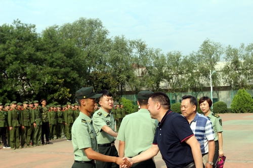 在对各位同学进行慰问时,姜晰书记说到,军训是对当代大学生意志的磨砺,能够帮助同学们改正不良的生活习惯,希望各位同学在军训中培育优良作风,养成良好习惯,并坚持延续下去。刘亚军院长忆及自己刚刚步入大学参加军训的时光,以自身经历勉励同学们克服困难,蜕茧成蝶。王聪老师和韩潇老师对两位教官的一丝不苟的辛勤付出表示了由衷的感谢,并寄语各位同学勇于承担责任,珍惜易逝光阴,认真上好大学的第一课。