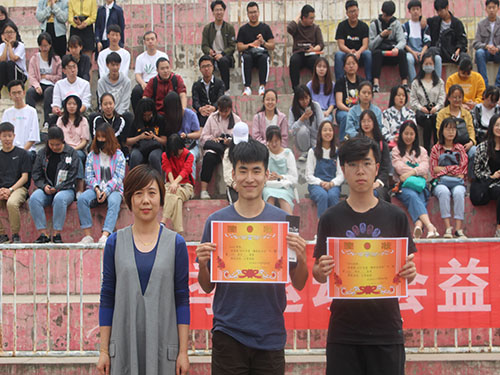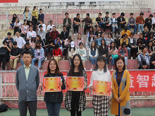 4月23日中午,成人电影 在校田径场举行趣味运动会颁奖仪式。成人电影 党委副书记王聪老师和各年级辅导员出席颁奖仪式为获奖同学颁发奖状和奖品,并与获奖同学合影留念。