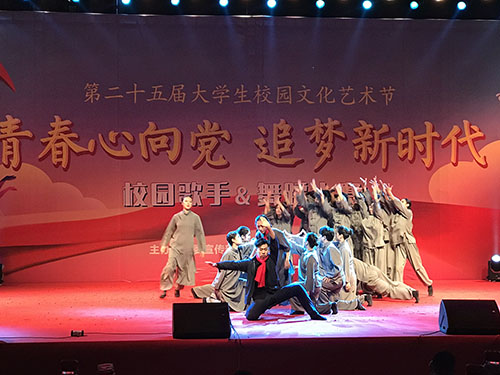 本届校园文化艺术节以“青春心向党,追梦新时代”为主题,节目形式新颖,内容丰富,充分展现了当代青年学生的良好精神风貌,同学们携手向五四运动100周年致敬,向新中国成立70周年献礼。
