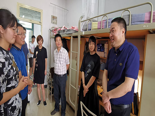 李立书记、刘亚军院长与党委副书记王聪仔细询问了新生是否适应学校住宿生活,副院长潘俊武与副院长张光查看了宿舍的整体情况,2019级辅导员秦音老师深入了解了同学们的基本情况。