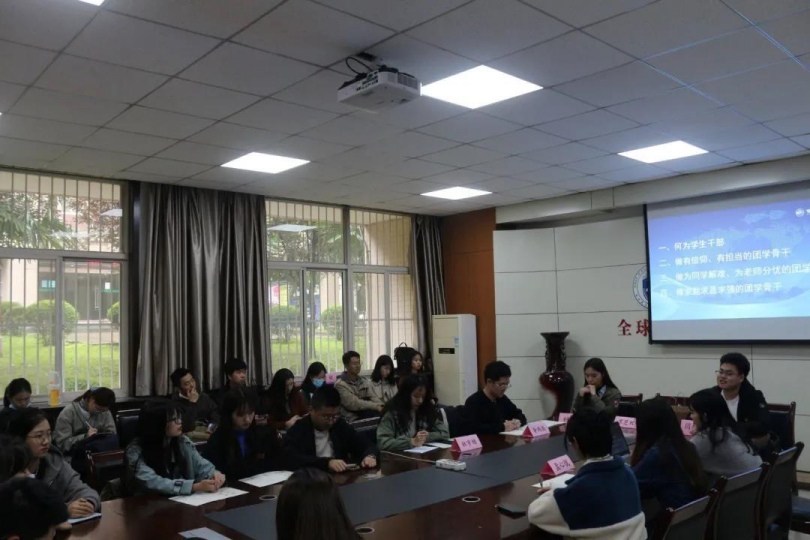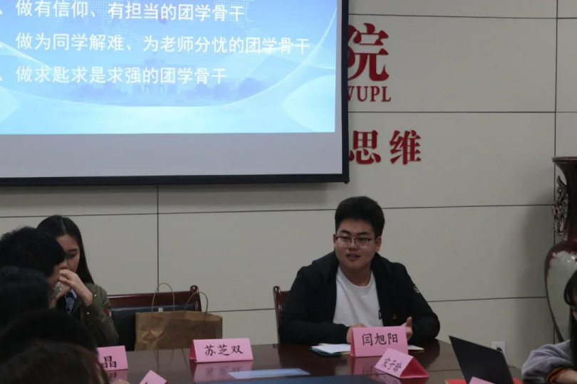 会议伊始,闫旭阳同学以“怎样做好一个团学骨干”这一严肃的问题开头。他首先明确学生干部与普通同学相同,除了做好本职工作,都应以学业为主。其次,要时刻秉承服务同学的宗旨。在日常的学习生活中,要相信集体、相信组织,坚持“从同学中来,到同学中去”的原则,做有信仰、有担当,做一个为同学解难、为老师分忧的团学骨干。